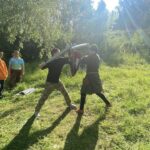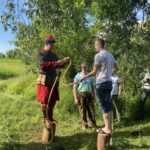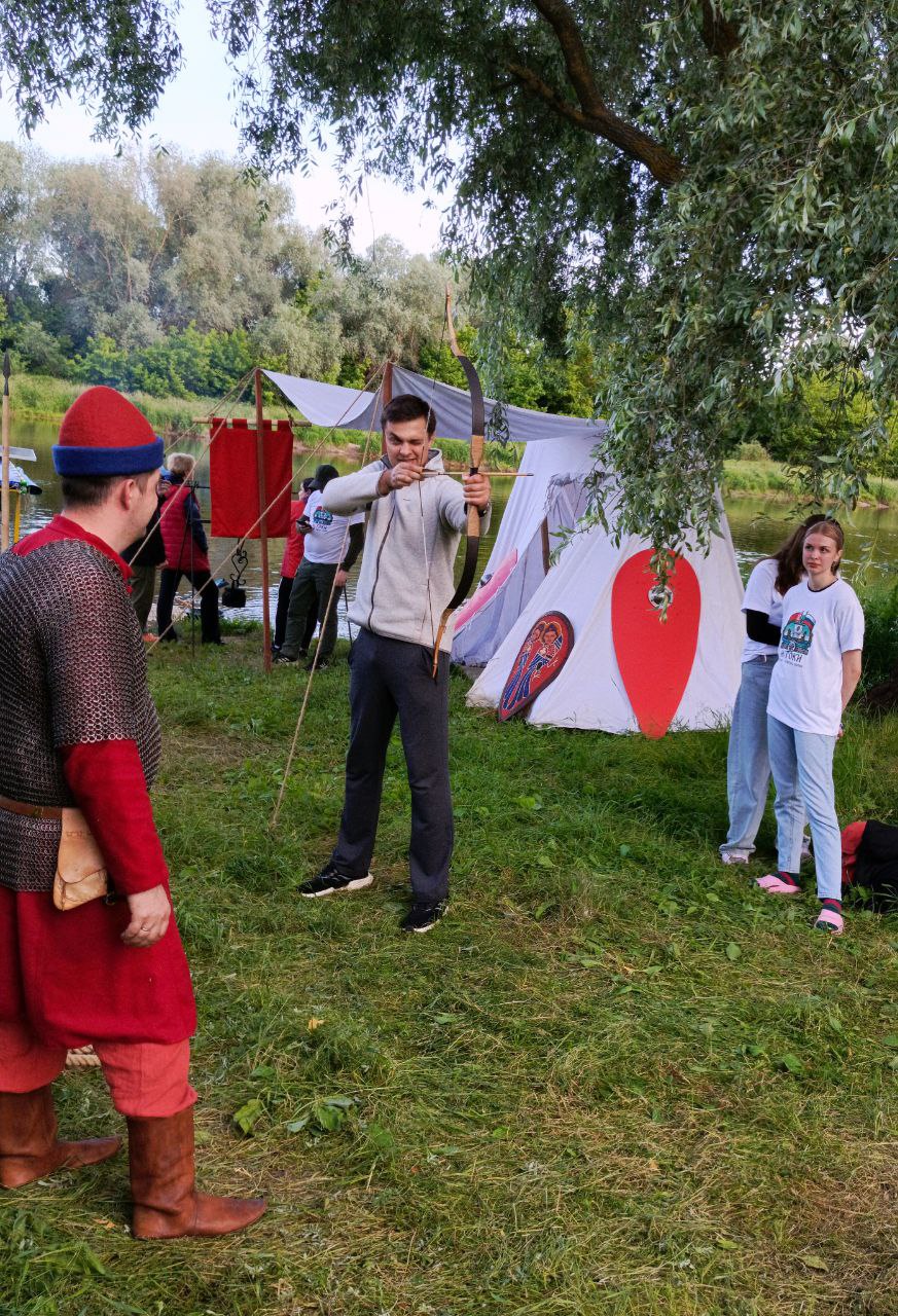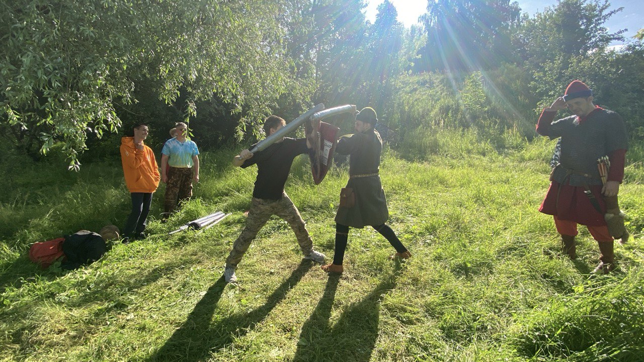 Гости прошли краткий курс по фехтованию и опробовали полученные навыки, посостязались в ловкости и сноровке, померялись силой, прошли мастер-класс по стрельбе из лука, а также примерили часть доспехов, чтобы понять каким нелегким было военное ремесло в те далекие времена и как непросто было нашим предкам защищать свои семьи, чтобы мы, их потомки, могли жить.