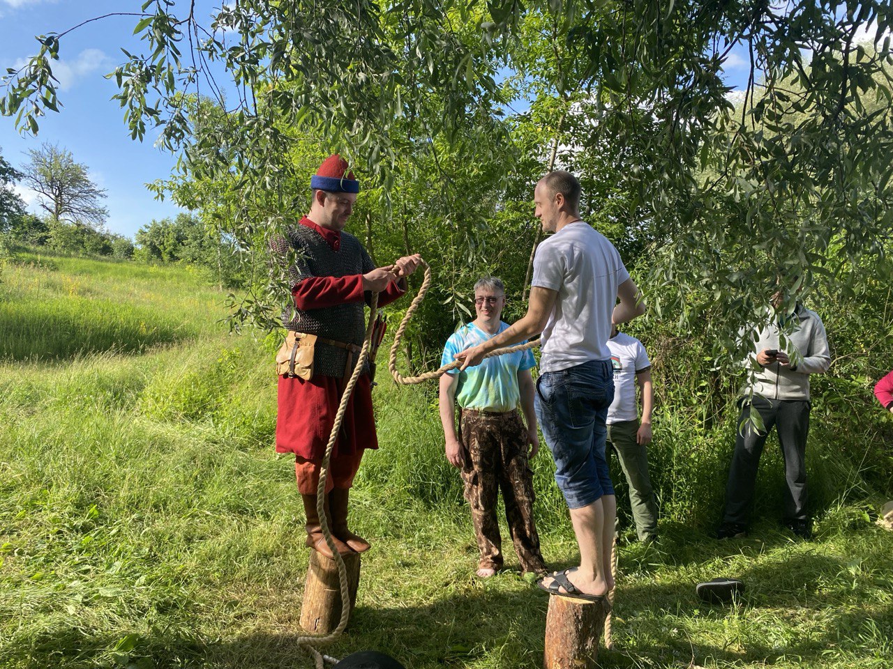 Первая стоянка была отведена под средневековье, которое и представил наш клуб. Мы встретили участников в оборудованном средневековом полевом лагере, где участников ожидал ряд состязаний для проверки готовности присоединиться к Андрею Ольгердовичу в его борьбе с Ягайло за право жить на земле предков и по традициям предков.